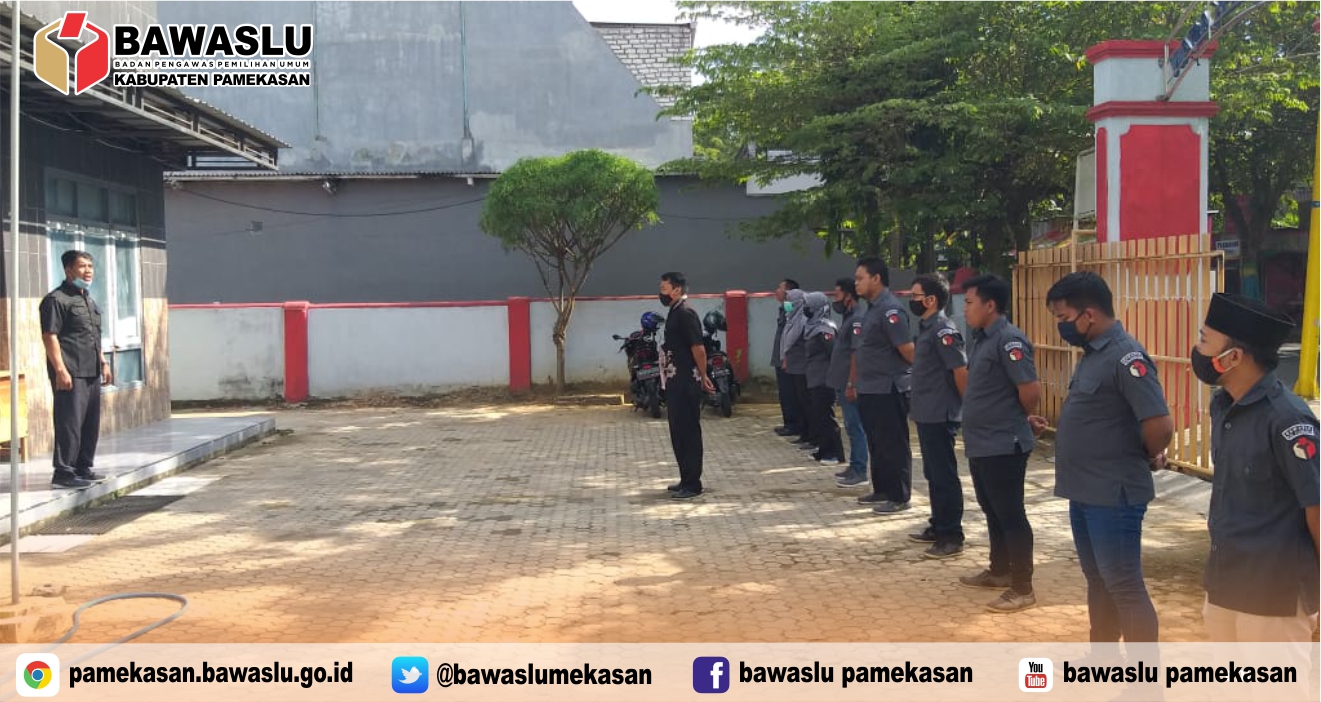 pelaksanaan apel yang diikuti semua staf kesekretariatan dan dipimpin oleh koordinator Sekretariat ini berlangsung hikmat, hadir sebagai pembina apel ketua Bawaslu Pamekasan Abdullah Saidi, M.PdI.
