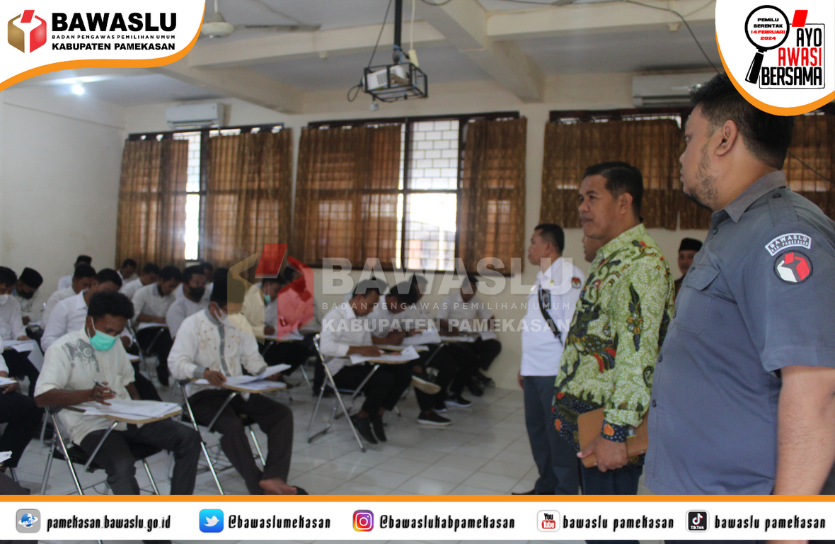Badan Pengawas Pemilihan Umum Kabupaten Pamekasan - Pamekasan. Bawaslu Kabupaten Pamekasan awasi pelaksanaan tes tertulis calon anggota Panitia Pemungutan Suara (PPS) yang dilakukan Komisi Pemilihan Umum (KPU) Kabupaten Pamekasan bertempat di IAIN Madura Kabupaten Pamekasan. Pengawasan tersebut dilaksanakan guna memastikan proses pelaksanaan tes tertulis tersebut sesuai dengan prosedur dan pedoman yang ada. 09/01/2023.