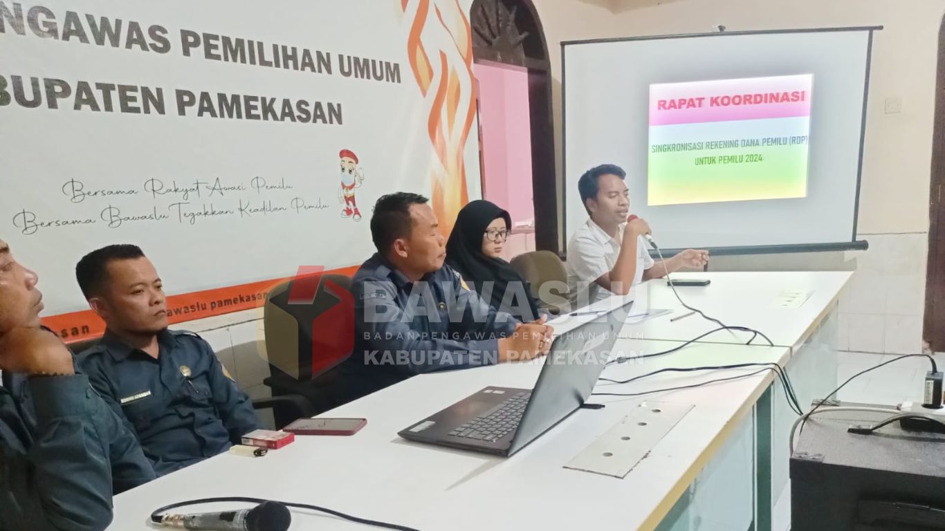 Badan Pengawas Pemilihan Umum Kabupaten Pamekasan mengadakan Rapat Koordinasi (Rakor) dengan Kepala Sekretariat beserta staf pembantu keuangan Panitia Pengawas Pemilu (Panwaslu) Kecamatan se-Kabupaten Pamekasan, Rakor ini diselenggarakan dalam rangka Singkronisasi Rekening Dana Pemilu (RDP) Untuk Pemilu 2024. Selasa, (21/02/2023).