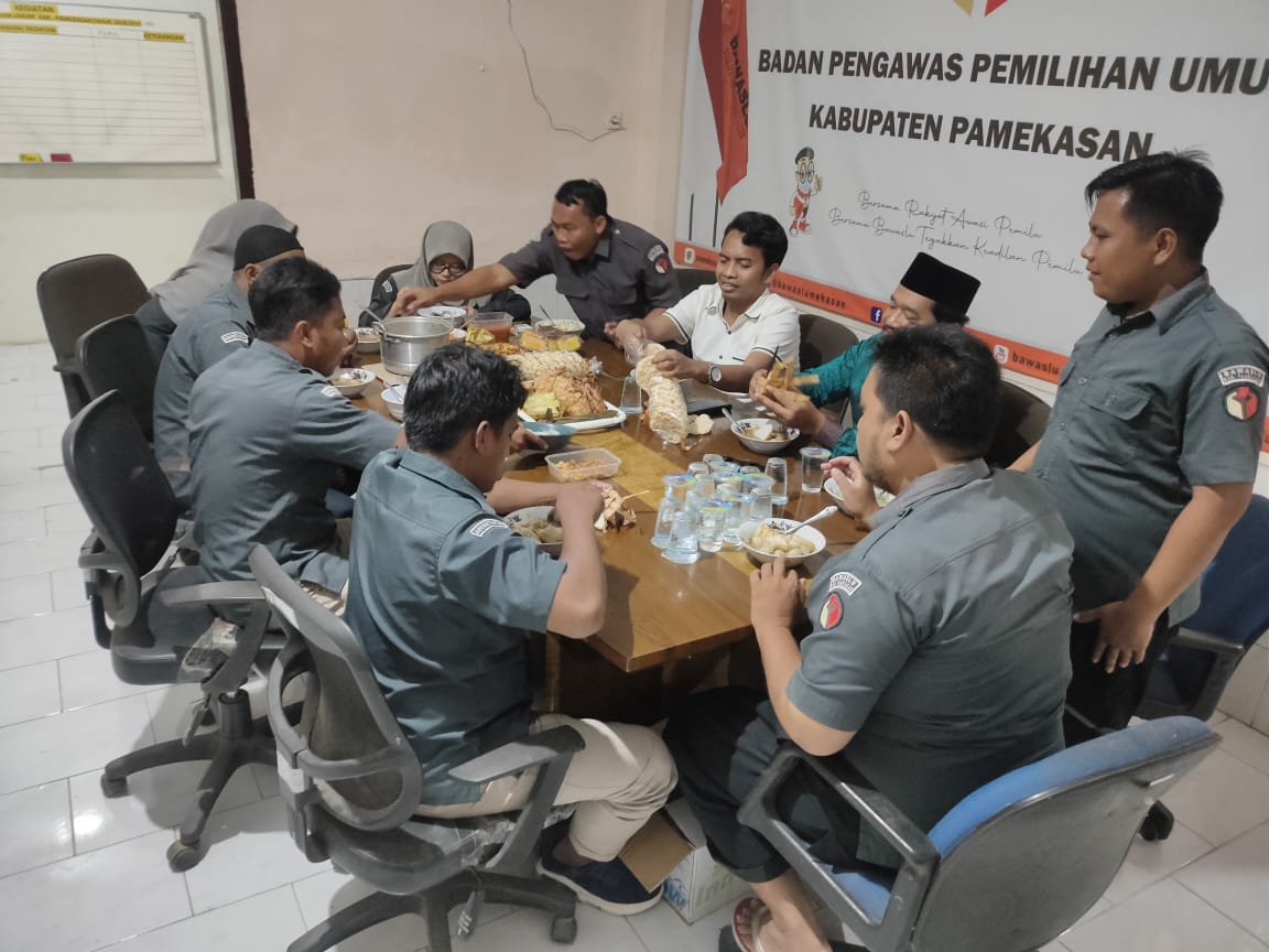 Bawaslu Pamekasan - Masih dalam suasana hari raya Idhul Fitri 1443 H, keluarga Bawaslu Kabupaten Pamekasan melaksanakan kegiatan halal bihalal antara pimpinan dengan jajaran sekretariat Bawaslu Kabupaten Pamekasan, bertepatan dengan tradisi hari raya ketupat hari Senin tanggal 9 Mei 2022.