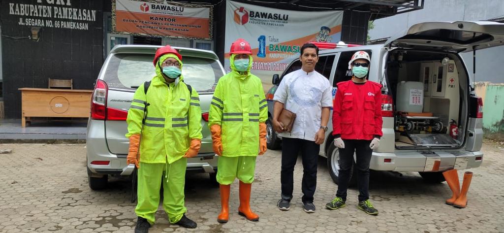 Petugas PMI tersebut tiba di Kantor Bawaslu Pamekasan sekitar Pukul 10:30 Wib. tiga petugas PMI melakukan penyemprotan yang dimulai dari Pintu Masuk , Ruangan Sekretariat, Ruang Komisioner, dan Ruang Staf Bawaslu Pamekasan.