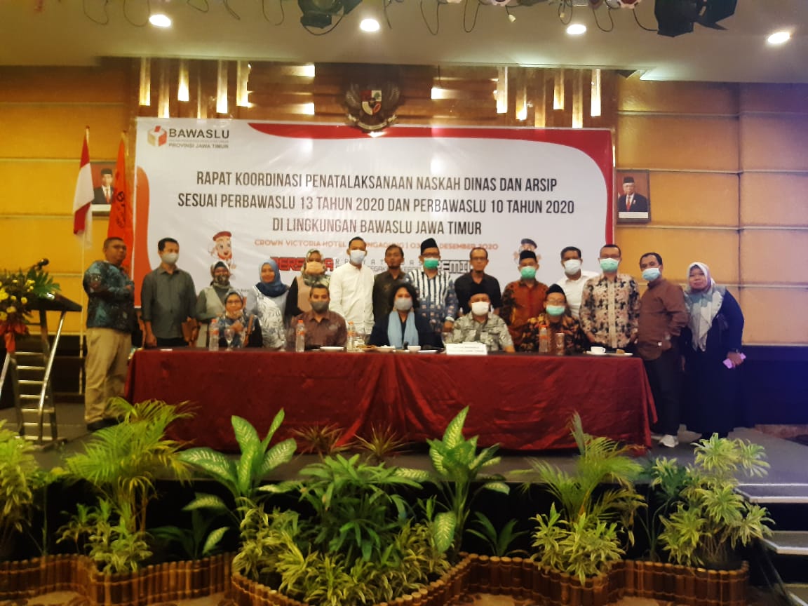 Sehubungan telah diterbitkannya Peraturan Bawaslu Republik Idonesia pada Bulan Oktober 2020 terkait tata naskah dinas dan kearsipan serta untuk mendukung terlaksananya pengelolaan arsip yang baik serta jadwal retensi arsip, Bawaslu Provinsi Jawa Timur mengadakan rapat koordinasi pelaksanaan naskah dinas dan arsip sesuai Perbawaslu 13 tahun 2020 dan Perbawaslu 10 tahun 2020 yang dilaksanakan pada tanggal 3 s.d 5 Desember 2020 di hotel Cronw Viktoria Tulungagung. Acara tersebut di hadiri oleh 19 Kabupaten/kota terundang yang tidak melaksanakan Pilkada serentak di tahun 2020, Tak terkecuali Bawaslu kabupaten Pamekasan yang turut hadir dan di wakili oleh Koordinator divisi SDM dan Organisasi, Koordinator Sekretariat Bawaslu Kabupaten Pamekasan serta staf yang membidangi SDM dan Organiasi.