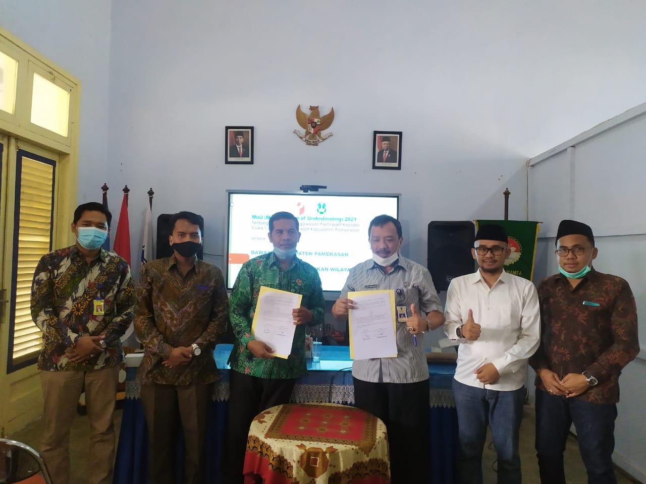 pamekasan.bawaslu.go.id//Pamekasan, Badan Pengawas Pemilihan Umum Kabupaten Pamekasan bersama Cabang Dinas Pendidikan Wilayah Kabupaten Pamekasan melakukan kegiatan kerja sama yang berbentuk Memorandum of Understanding (MoU) tentang Pengawasan Partisipatif bagi siswa SMA/SMK se-Kabupaten Pamekasan, acara tersebut juga dihadiri Kepala Sekolah SMA/SMK se-Kabupaten Pamekasan beserta lima Komisioner Bawaslu Pamekasan yang bertempat di Aula Kantor Cabang Dinas Pendidikan Wilayah Kabupaten Pamekasan, Jumat, (26/03/2021).