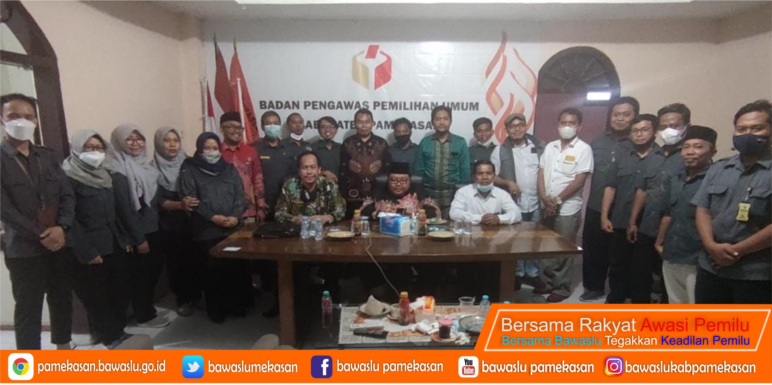 Bertepat di ruang pertemuan Bawaslu Kabupaten Pamekasan dan dihadiri oleh ketua Bawaslu Provinsi Jawa Timur Moh. Amin dan Kepala Sekretariat Bawaslu Provinsi Jawa Timur Sapni Syahril.
