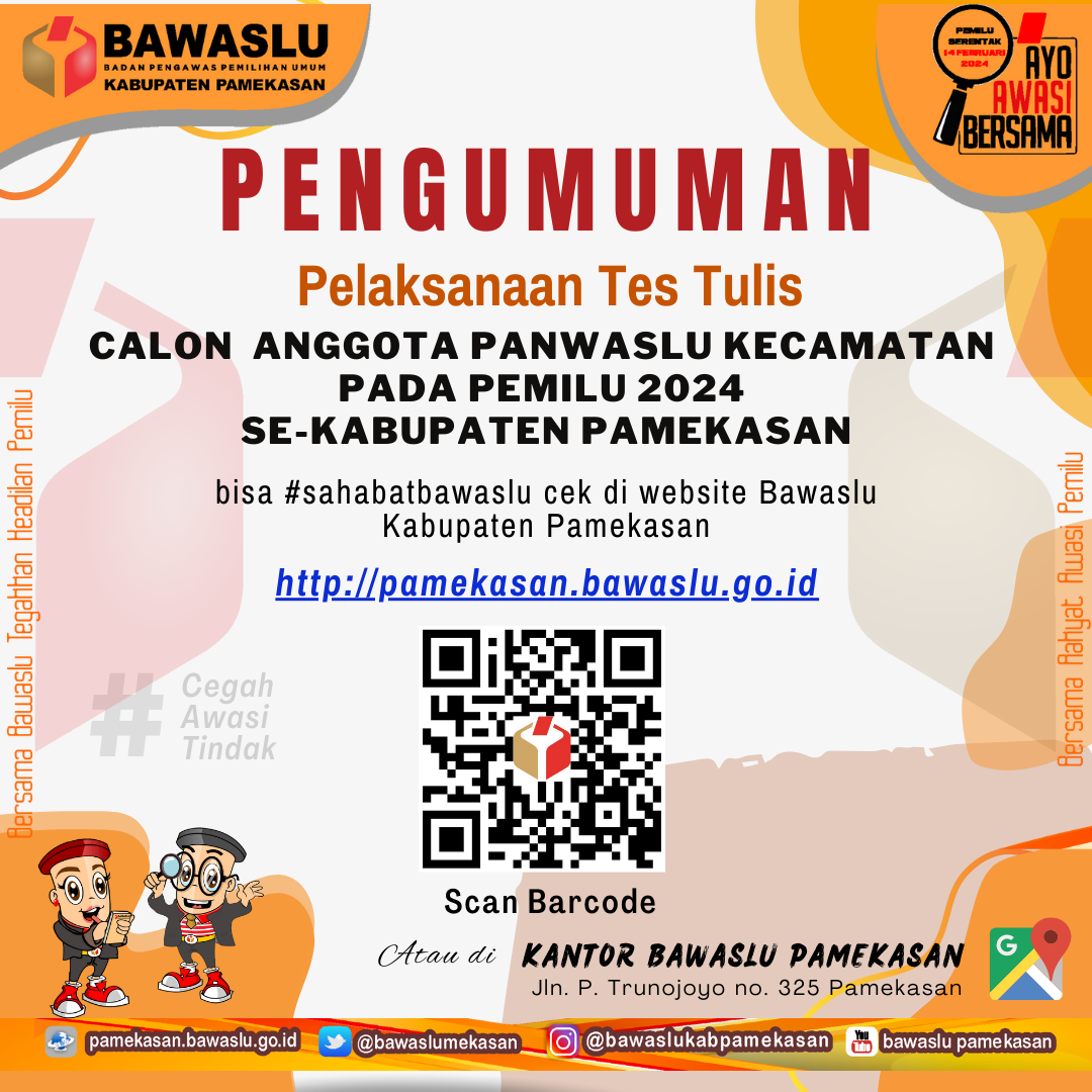 Pengumuman Pelaksanaan Tes Tertulis Calon Anggota Panwaslu Kecamatan Kabupaten Pamekasan Tahun 2022