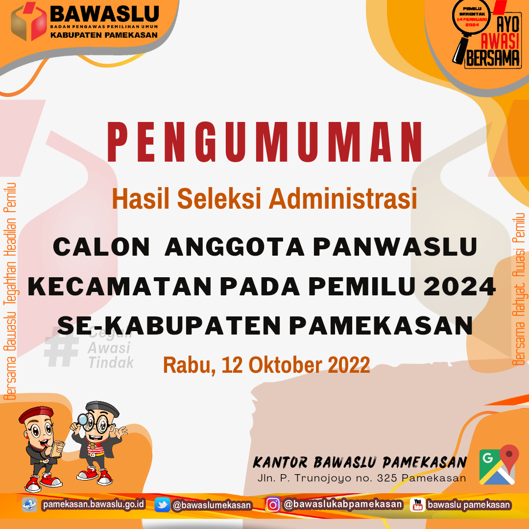Pengumuman Seleksi Administrasi Panwascam Se-Kabupaten Pamekasan Tahun 2022