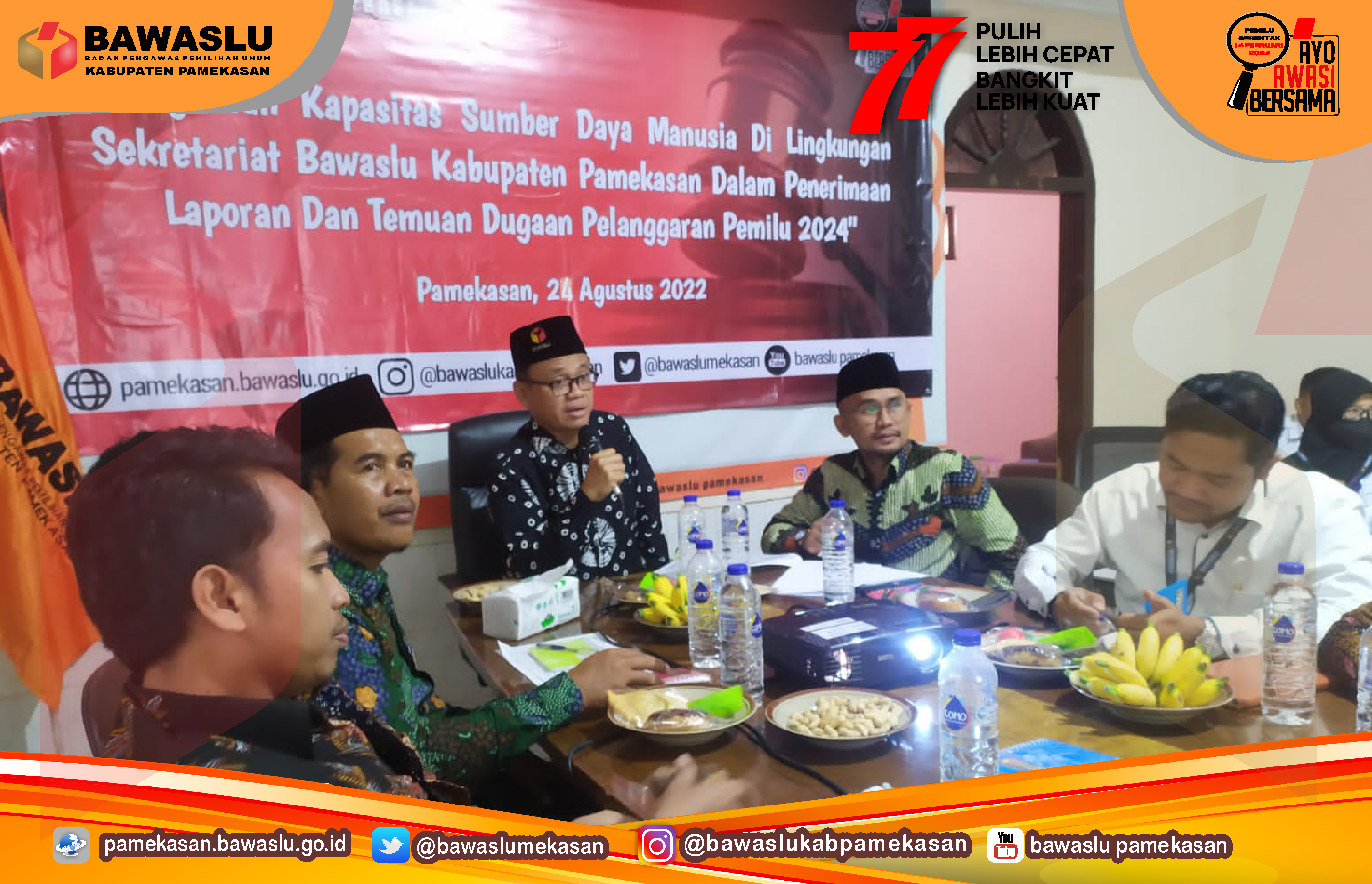 pamekasan.bawaslu.go.id/ Divisi Penanganan Pelanggaran Bawaslu Kabupaten Pamekasan mengadakan kegiatan Penguatan kapasitas SDM di lingkungan sekretariat Bawaslu Kabupaten Pamekasan dalam penerimaaan Laporan dan Temuan dugaan pelanggaran Pemilu 2024.