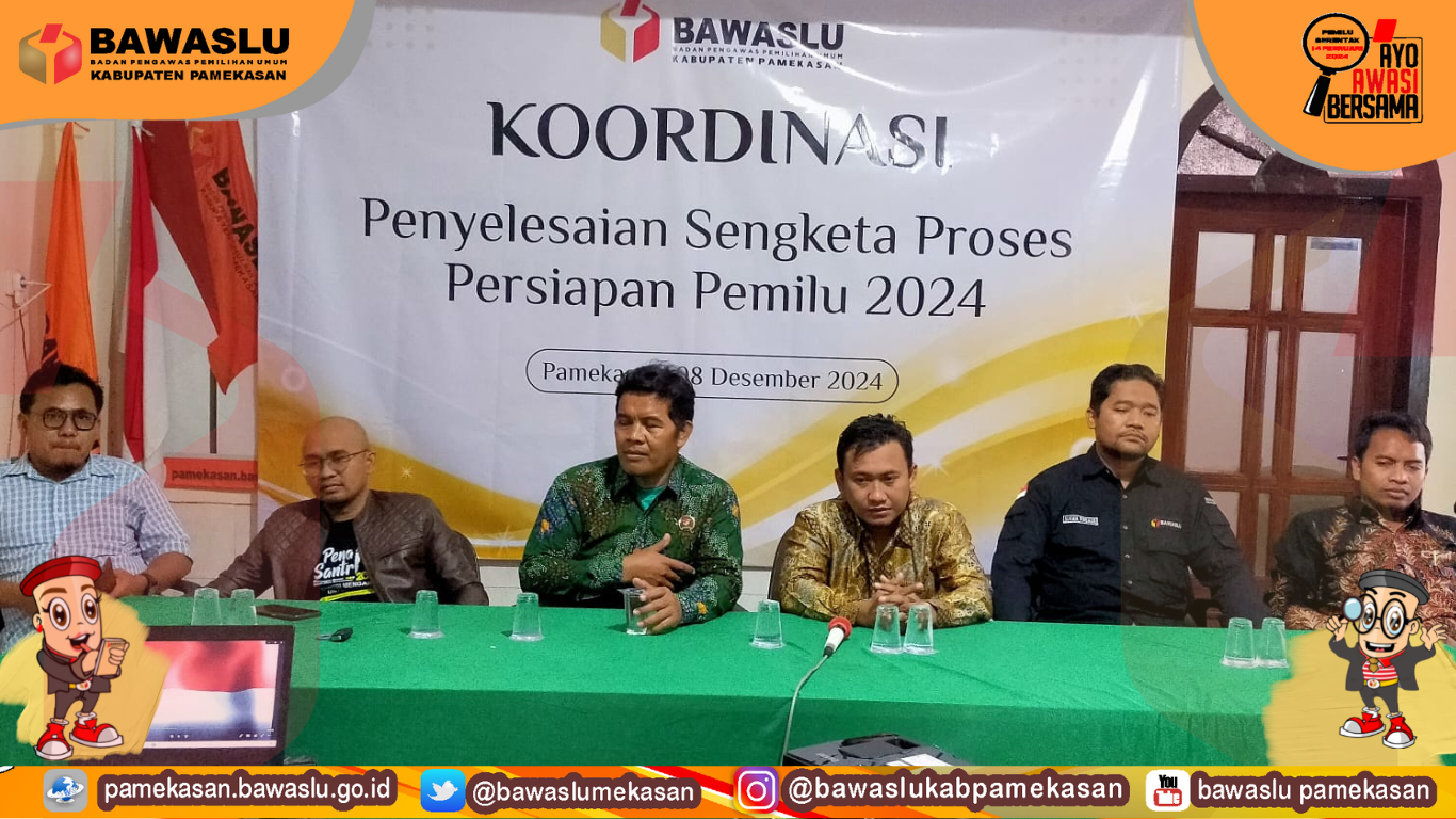 Pamekasan.bawaslu.go.id/ Persiapkan Pemilu Tahun 2024 Divisi Hukum dan Penyelesaian Sengketa Proses Badan Pengawas Pemilihan Umum Kabupaten Pamekasan adakan giat rapat koodinasi dengan tema “Koordinasi Penyelesaian Sengketa Proses Persiapan Pemilu Tahun 2024".
