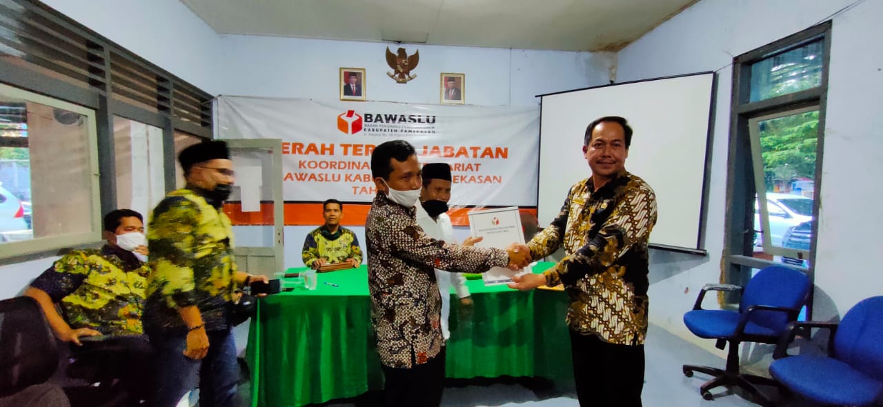 Dilakukan serah terima jabatan dari Korsek lama kepada Korsek baru karena jabatan Bapak Hasan sebagai Pegawai Negeri Sipil (PNS) pada tanggal 1 Juni 2020 sudah dinyatakan purna tugas, sehingga perlu pergantian Korsek untuk menjalankan Tugas Pokok dan Fungsi (TUPOKSI) Bawaslu Kabupaten Pamekasan.