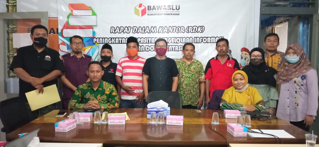 Pamekasan - Koordinator Divisi Hukum, Humas dan Data Informatika Kabupaten Pamekasan, menyelenggarakan Rapat Dalam Kantor (RDK) dengan tema “Peningkatan Kapasitas Pengelolaan Informasi dan Dokumentasi”, di ruang Pertemuan Bawaslu Kabupaten Pamekasan, Jl Segara No. 66 Kelurahan Jungcangcang, Kecamatan Pamekasan, Kabupaten Pamekasan, Jum’at Tanggal 05/12/2020.