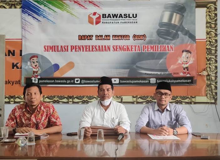 Pamekasan.bawaslu.go.id/Pamekasan. Sebagai Upaya memfasilitasi terwujudnya peningkatan kemampuan menjadi mediator maupun sebagai majelis musyawarah dalam sidang musyawarah tertutup (mediasi) dan/atau dalam persidangan musyawarah terbuka, dalam proses penyelesaian sengketa antar peserta pemilihan maupun sengketa antara peserta pemilihan dan penyelenggara pemilihan, Badan Pengawas Pemilu Kabupaten Pamekasan mengadakan Rapat Dalam Kantor (RDK) di lingkungan Sekretariat Bawaslu Kabupaten Pamekasan yang berlangsung tanggal 27 Oktober 2020 bertempat di Ruang Pertemuan Bawaslu Kabupaten Pamekasan.
