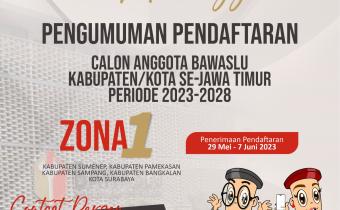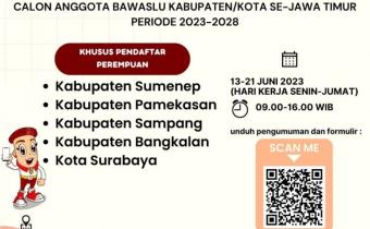 Berdasarkan Keputusan Ketua Bawaslu Nomor: 176/HK.01.01/K1/05/2023 atas kewenangan yang diberikan oleh Undang-Undang Nomor 7 Tahun 2017 tentang Pemilihan Umum, serta memperhatikan jumlah kebutuhan pendaftar dan keterwakilan pendaftar perempuan pada masing-masing Kabupaten/Kota di Provinsi Jawa Ti