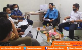 Pamekasan.bawaslu.go.id - Anggota Badan Pengawas Pemilihan Umum (Bawaslu) Provinsi Jawa Timur Muh. Ikhwanudin Alfianto mendatangi Kantor Bawaslu Kabupaten Pamekasan di Jalan Trunojoyo 325 Kamis sore (7/10).