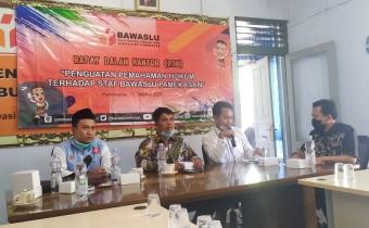 PAMEKASAN.BAWASLU.GO.ID - Selasa tanggal 29 September 2020, Komunitas Mahasiswa Hukum Islam Universitas Trunojoyo Bangkalan Madura menyelenggarakan Acara Kajian rutin Via Google Meet dengan tema “ Pilkada Serentak Ditengah Pendemi, Siapa Pihak yang di Untungkan,”., acara tersebut menghadirkan Koordi